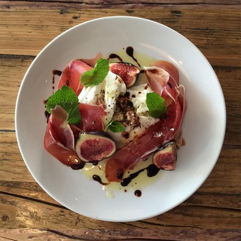 Buffalo mozzarella, black fig, mint, prosciutto