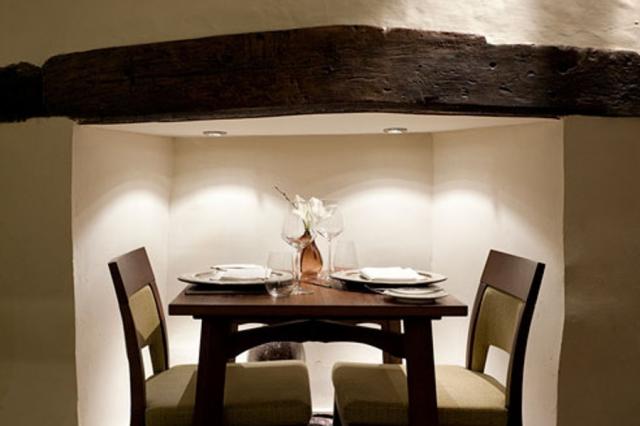 Set in a 16th century red-brick house, the 16-seater restaurant's traditional wooden interior is complemented by a modern interior decor. After the fire, the couple took over the adjacent building, extending the restaurant into a large main room with a semi-open kitchen.