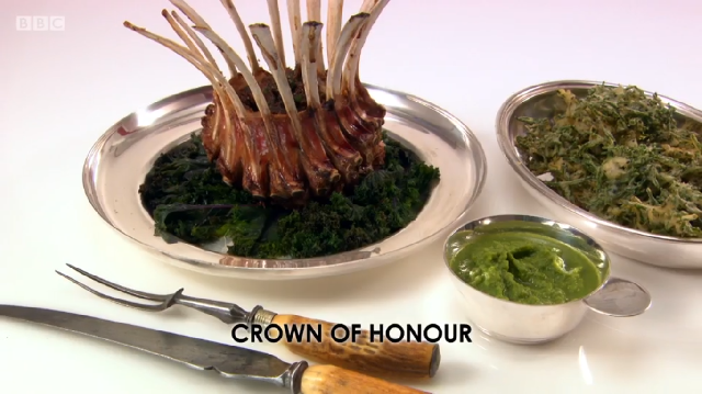 Ronnie’s dish featured two eight-bone racks of lamb, tied together in a ‘Crown of Honour’. In