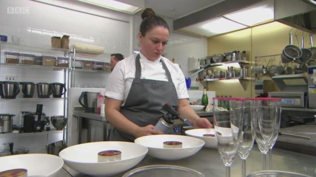 Returning banquet champion, Tommy Banks, head chef at The Black Swan, failed to impress the judges with his refined tomato based dish. The judges said that the theatre of the dish, Midsummer – which was set alight at the table - failed to make up for the eating of it. Judge Andi Oliver said it looked like “a collection of said melon balls”. Dear me…