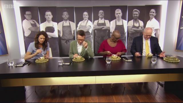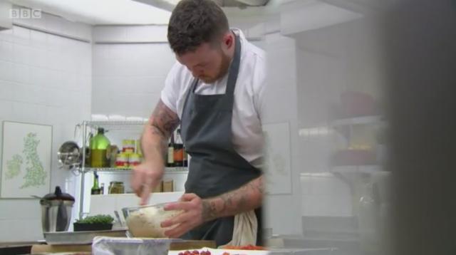 First to serve was Phil Carmichael, of Berners Tavern restaurant, who is representing Wales. Phil was advised to change the oxheart tomato in his dish as it was too big. Unfortunately, his decision to switch it for a plumb tomato didn’t pay off. Matthew Fort said that there was a “sort of so what” feeling about it. Yikes!