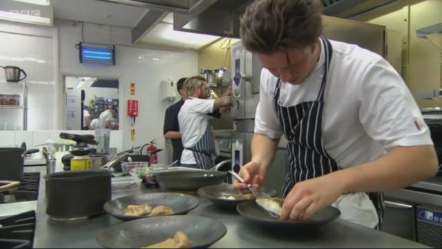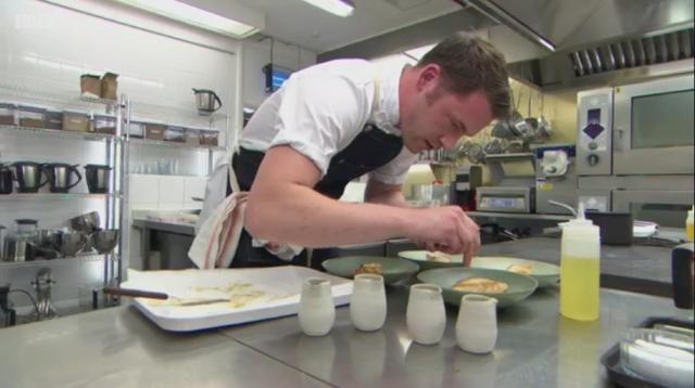 It was another tense night as the Wimbledon banquet gets ever closer, especially for chef Tom Brown who is head chef at Michelin starred fish restaurant Outlaw’s at The Capital. Being in the top three for his starter Tom was determined to see his fish course, Soused Breal & Scrumpy, at the banquet.