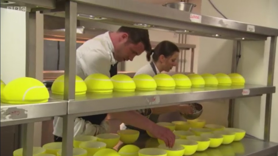 Welsh contestant Phil Carmichael, chef proprietor at Berners Tavern, placed seventh for his dessert which also featured an edible tennis ball. The judges liked the sweet however they thought it was too much of a gimmick and not classy enough for the Wimbledon banquet.