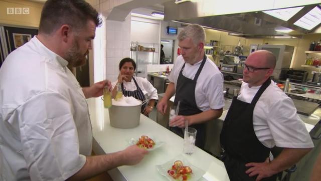 It’s been a challenging week for the Great British Menu 2017 Scottish contestants, with a mixed bag of scores and cutting reviews from competition veteran and four Michelin-starred chef, Nathan Outlaw. Last night’s dessert round was the last chance for Michael Bremner, of 64 Degrees, Ally McGrath, of Osso, and private chef, Angela Malik, to whip up top scoring dishes with a ‘taste of summer’ for the chance to cook at the Wimbledon banquet.