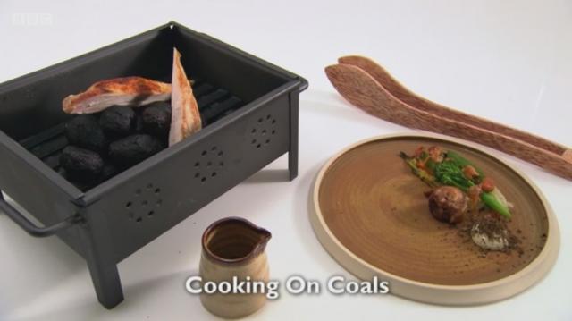 It was a stressful night in the Great British Menu kitchen as competitors Michael Bremner, of 64 Degrees restaurant, Ally McGrath, owner of Osso and classically trained, private chef, Angela Malik went head-to-head with their main courses in an attempt to win the chance to serve their food at a banquet celebrating 140 years of The Championships, Wimbledon. First to the pass was returning contestant, Ally, who has struggled to hit the high marks so far. He hoped to score an ace with his dish Cooking On Coals, which definitely met the brief ‘a taste of summer.’