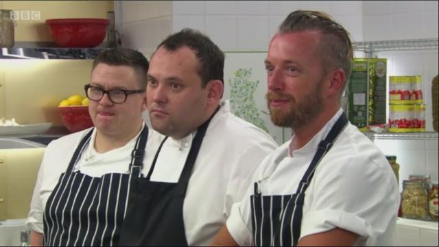 Great British Menu contestants 2017 Paul Croasdale, who is aiming to open his own restaurant, returning contestant Phil Carmichael, of Berners Tavern and Nick Brodie, head chef at Llangoed Hall, had just one point between them going into the main course round.