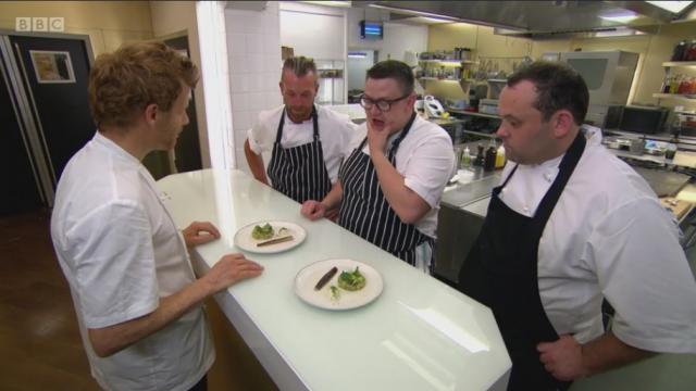 After being four minutes late to serve, Tom questioned whether the dish would be suitable for the banquet. The chefs said that the dish hit the ‘taste of summer brief’ as it looked summery, with vibrant colours, but lacked flavour. Tom agreed, saying that some of the flavours were too subtle.
