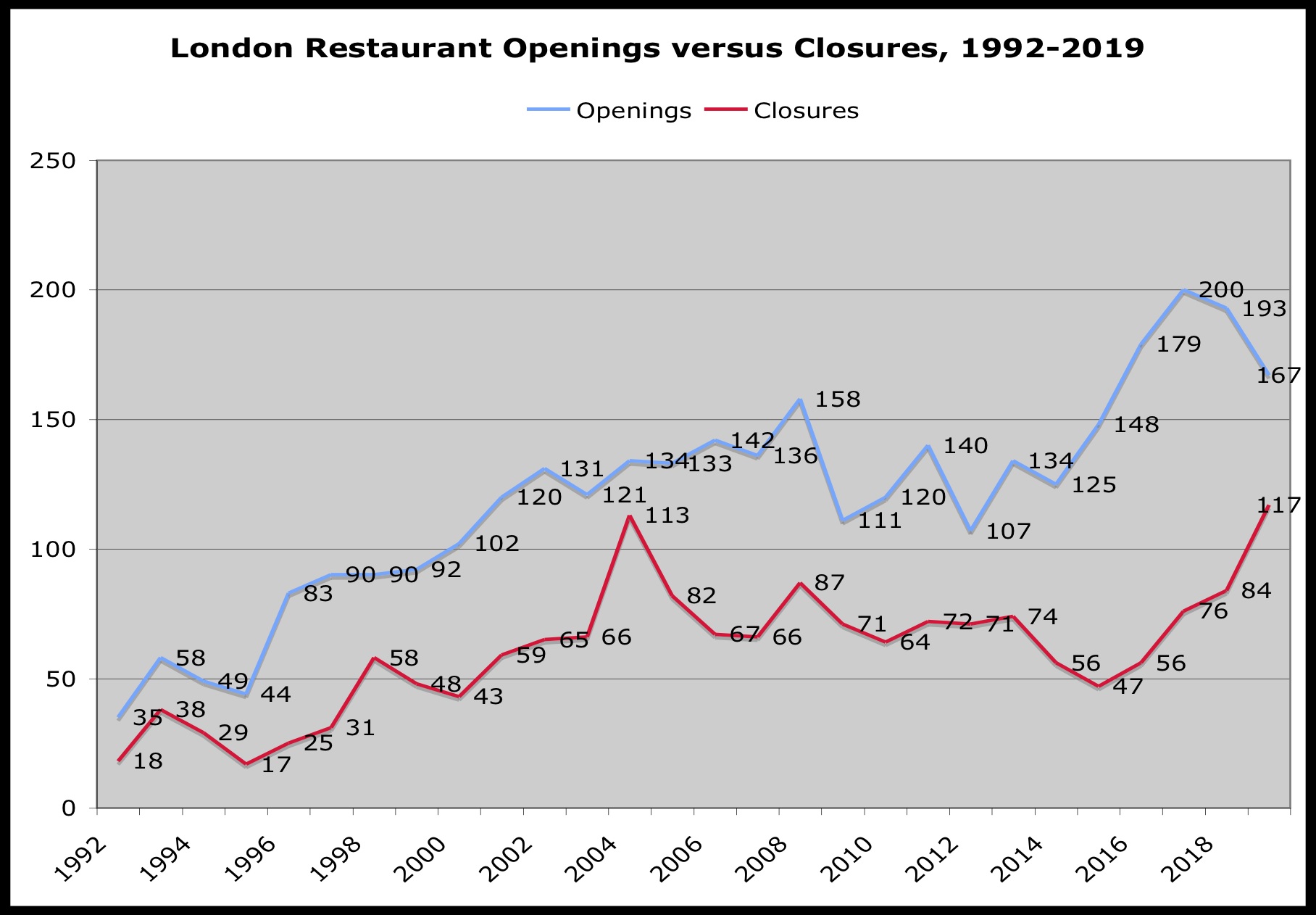 Harden’s, the UK’s original ‘user-generated content’ restaurant guide, announced there have been 117 closures: the highest since the guide commenced publication in 1991 (the previous high was 113 in calendar 2003).