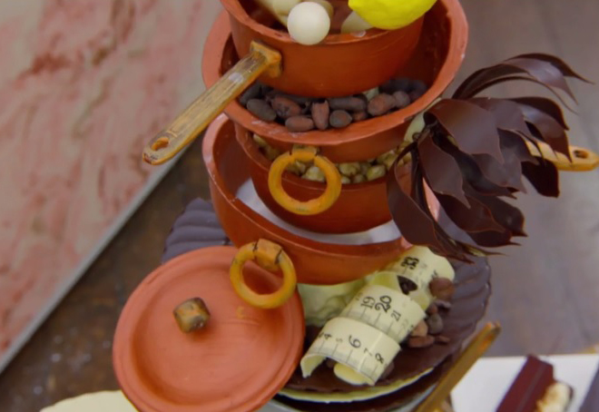 Having secured a place in the finals via a wild card, Mark and his team had a lot to prove winning over the judges with their final showstopper, a banquet piece needing to feed at least 100 whilst reflecting them as a team. Encapsulating the brief, the chocolate showstopper incorporated various kitchen utensils and dishes such as pots and pans, chopping boards, spatulas, etc. whilst also showcasing a variety of tasty desserts including rhubarb and custard tarts, gin and lemongrass panna cottas and coconut and rum dacquoise opera slices.
