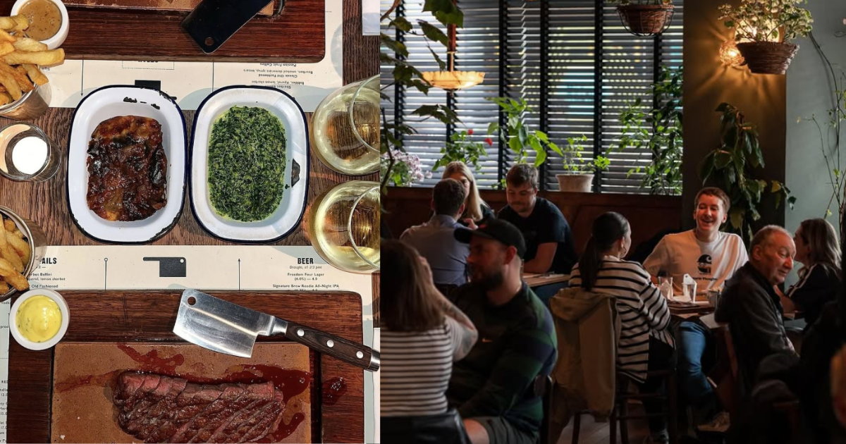 Flat Iron’s approach to interiors mirrors its menu philosophy: reveal, don’t reinvent. By stripping back each historic shell, then restoring with reclaimed timbers, oak, vintage finds and warm textures, the rooms tend to feel comfortable and lived-in from day one.