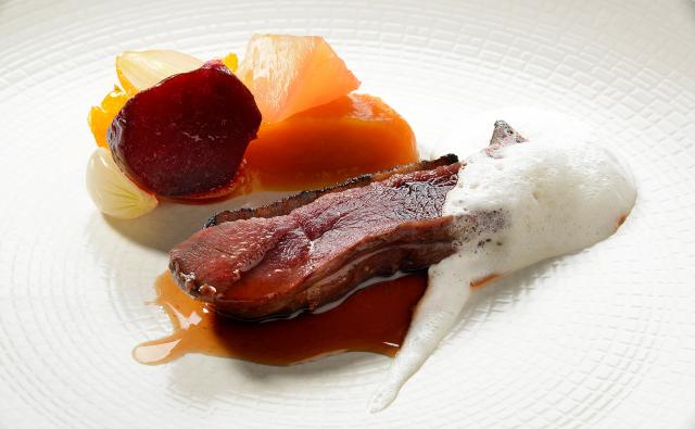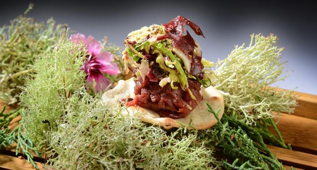 Red Deer Heart Winter Salad and Foraged Plum, Buckwheat Taco, Yeast