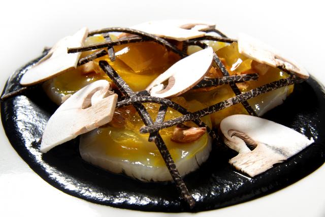 Raw orkney scallop hazelnut, clementine and perigord truffle