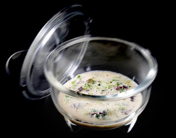 Warm chestnut & oyster broth with wild Scottish seaweeds