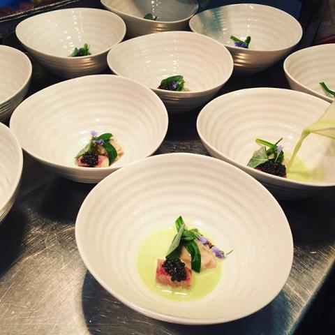 In at eighth: #1stcourse from @tomparkerfence, Oyster, smoked eel, caviar, sea purslane