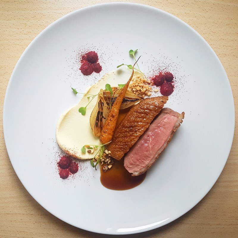 https://www.thestaffcanteen.com/public/js/tinymce/plugins/moxiemanager/data/files/00 Insta Top Ten March 2019/march /Honey coriander glazed duck breast%2C parsnip puree%2C duck fat seared carrot and onion%2C sweet n sour beetroot puree%2C hazelnut%2C port wine duck jus by .jpeg