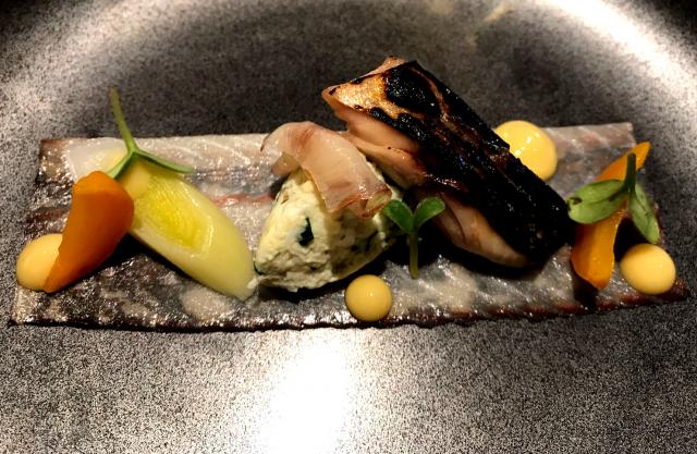 Thinly Sliced Smoked Eel, Grilled Mackerel, Golden Beetroots and Sweet Mustard