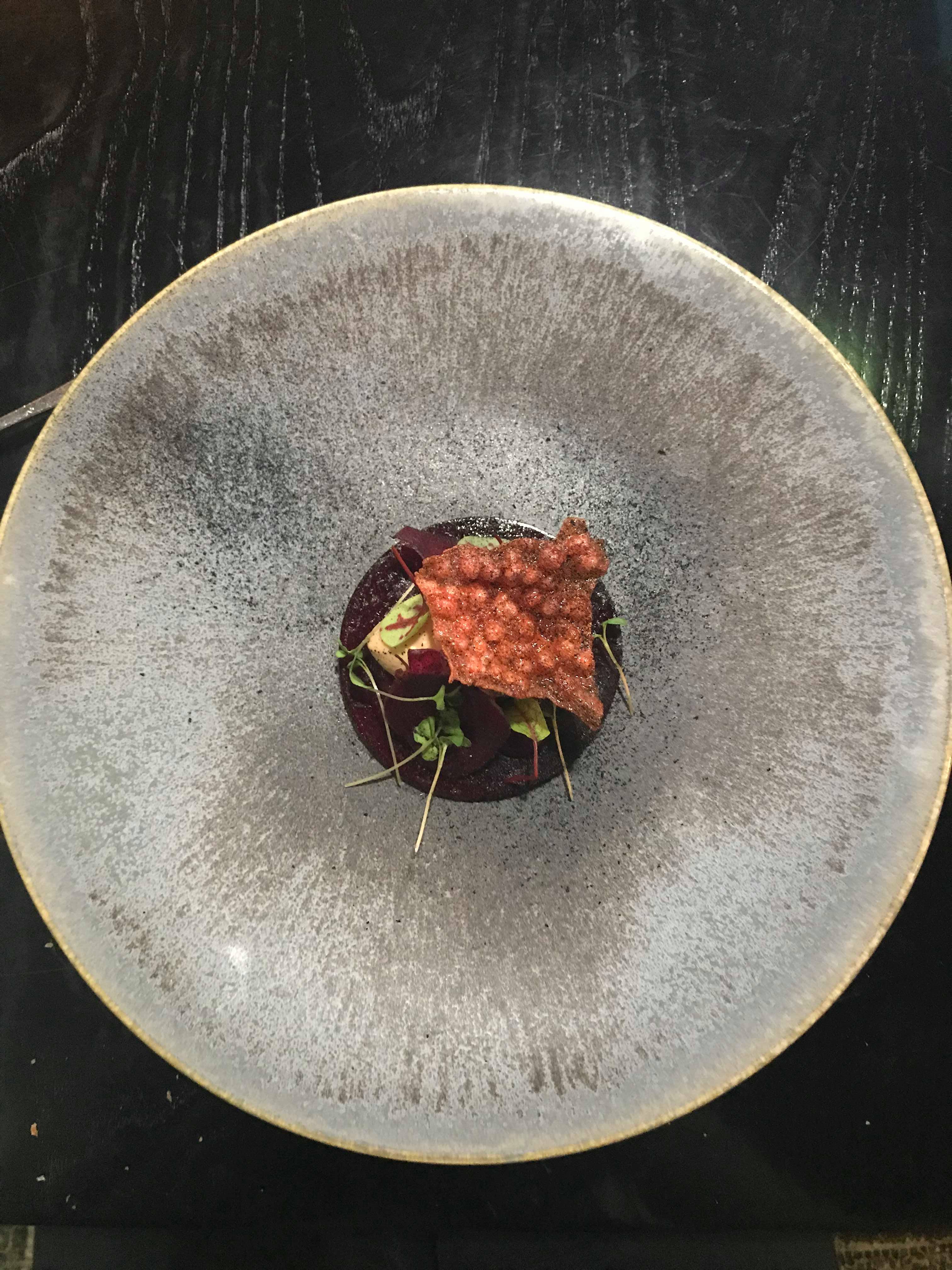 Seafood from Norway's Norwegian Skrei cod was then served with with cauliflower and cheese, winter truffle and pickled florets.
