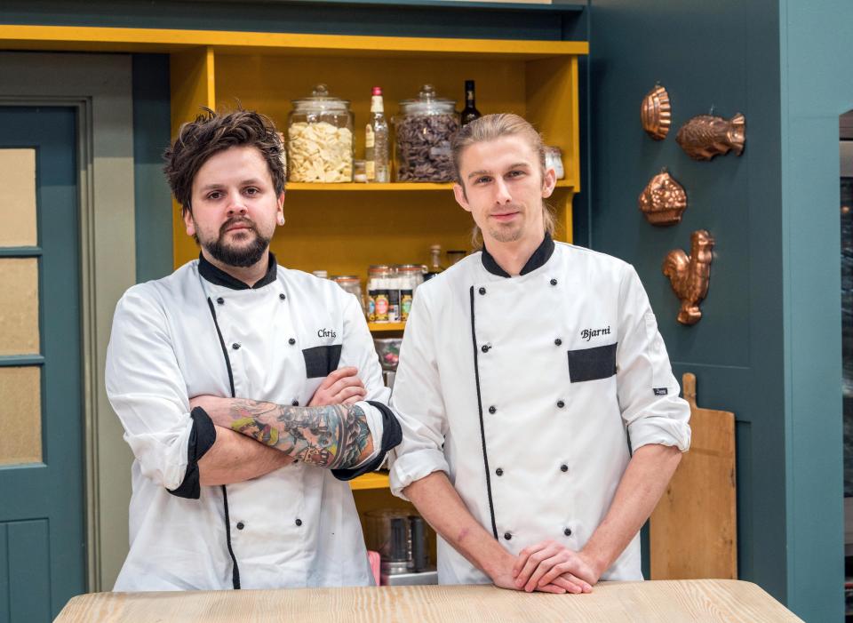 Chris Comer and Bjarni Muller are from The Warren restaurant in Tunbridge Wells, Kent. Head pastry chef Chris has previously worked at the Buxted Park hotel in East Sussex as head pastry chef and lives in Tunbridge Wells with his girlfriend.