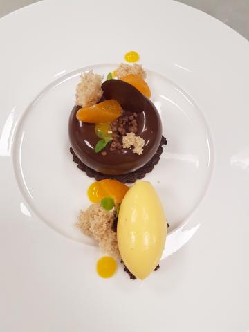 Apricot, chocolate and lemon thyme, the dish I won both UK and European roussillion dessert trophy with.