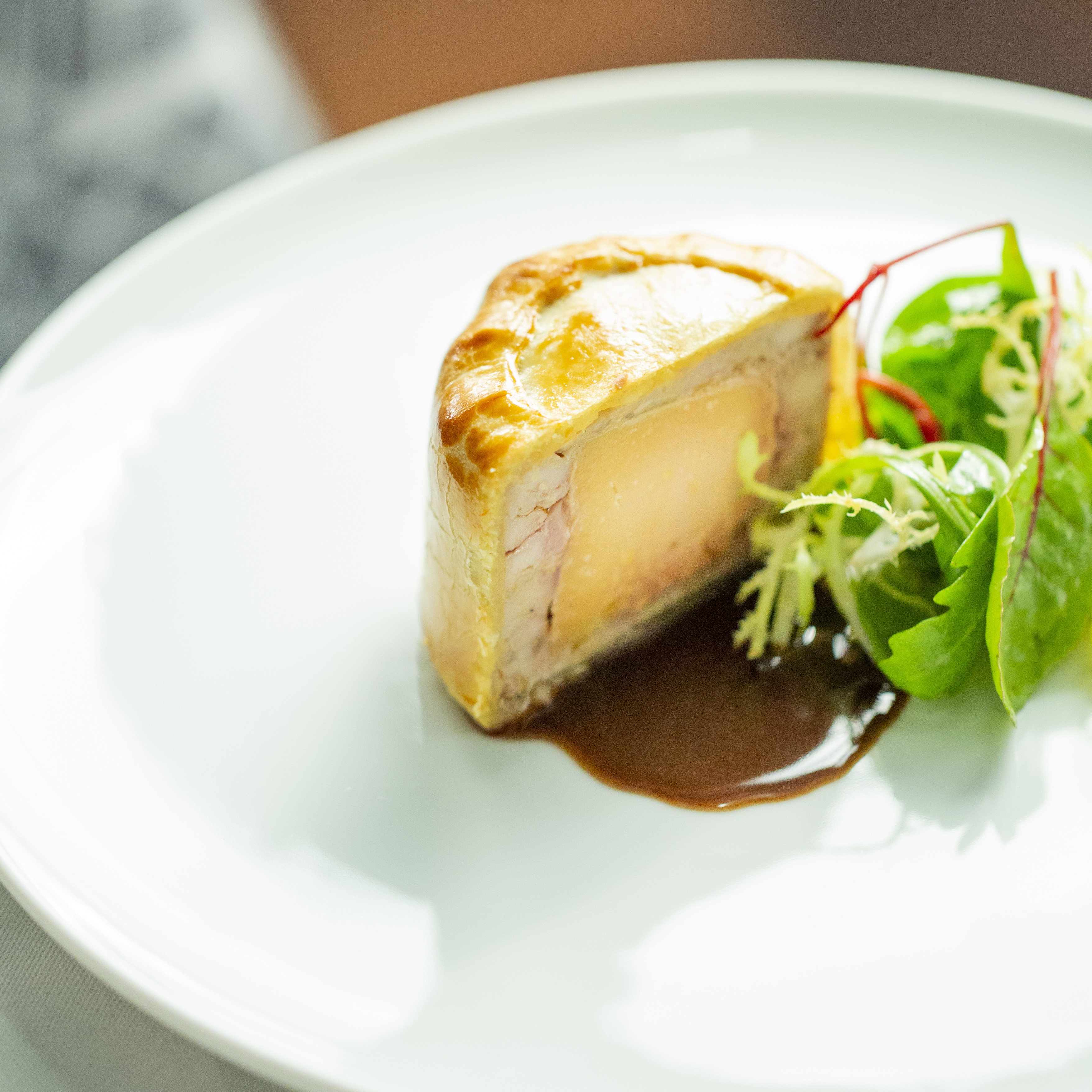 The dish which represents me the most I think is the Warm feathered game and duck foie gras pâté because of my family origins: my parents were butchers.