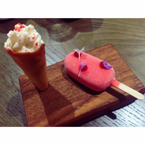 Scallops especially in the summer and I like making desserts as well and working with chocolate, although I don’t eat a lot of chocolate myself I‘d rather have a packet of crisps. But customers love chocolate so it’s really good to create dishes and pastry is a bit of escapism. We developd the cone and popsicle dessert for here to go with the snack concept - it’s a childish, playful and sweet.
