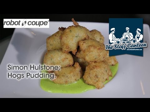 Michelin star chef Simon Hulstone creates hogs pudding beignets with parsley emulsion