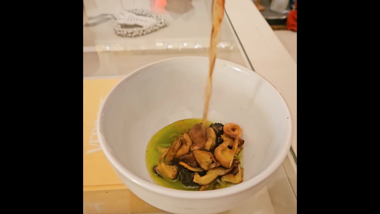 Mushroom and ale consommé • pickled walnut • truffled mushrooms