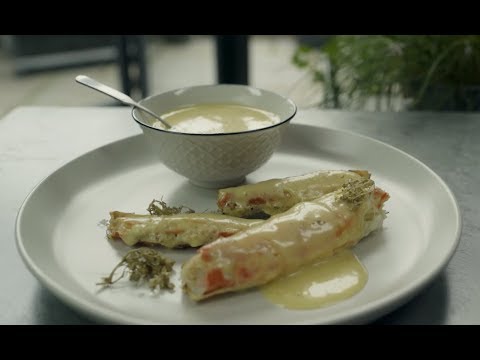 Adam Reid's BBQ Alaska King Crab legs with elderflower hollandaise