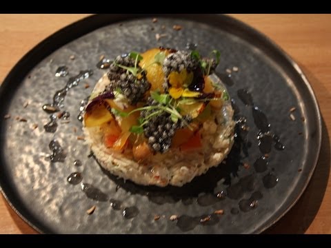Miso butternut squash salad, wakame vegan mayonnaise and seaweed salad recipe