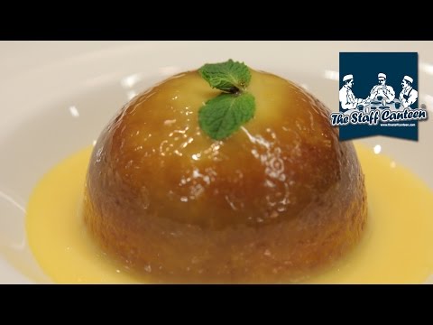 Golden syrup and beef suet steamed pudding, clementine and bay leaf custard